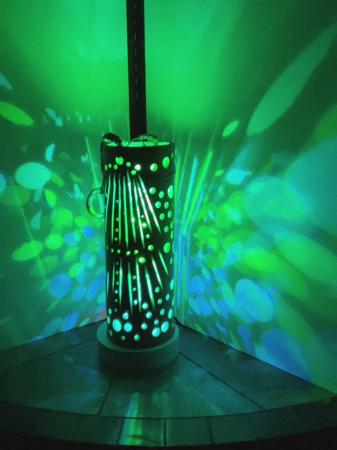 12" Lantern with bamboozled classic design. Signature LED effects. Macrame hanger.