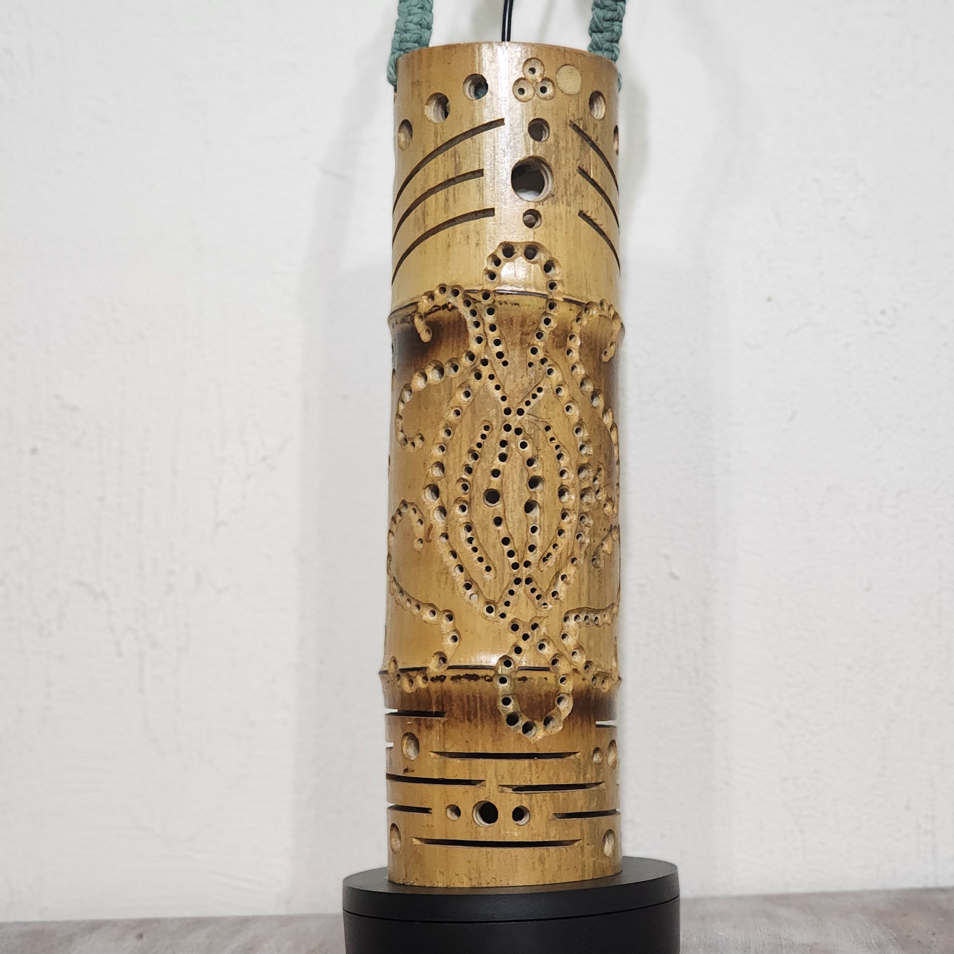 Unleash some charm with this 13" Bamboo Lantern - Turtle Pixel. The unique turtle pixel design adds a playful touch to any room, while the eco-friendly bamboo construction brings a sense of calm and sustainability. Light up your space with a pixelated twist!