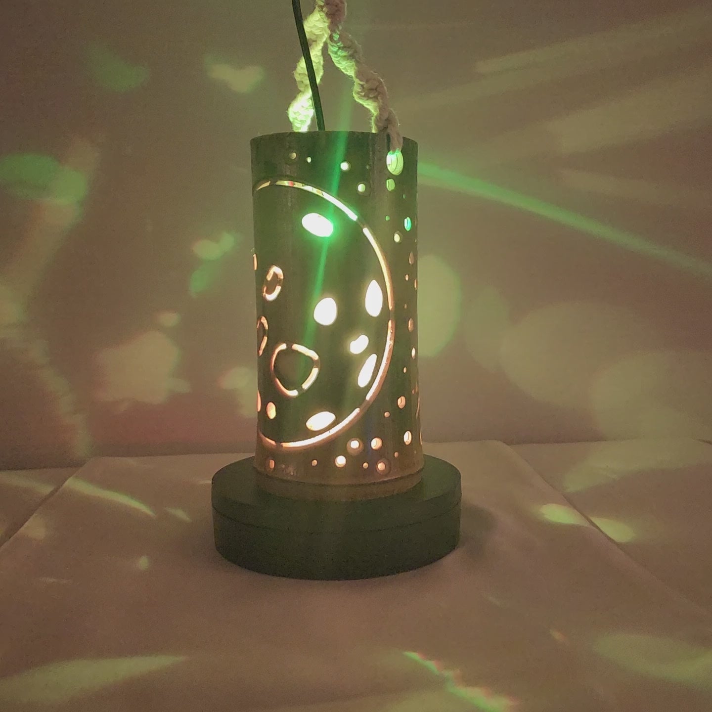 Light up your space with the 7" Bamboo Lantern, featuring a unique moon design. Bring a touch of whimsy and nature to any room. Shine bright like the moon with this quirky lantern.