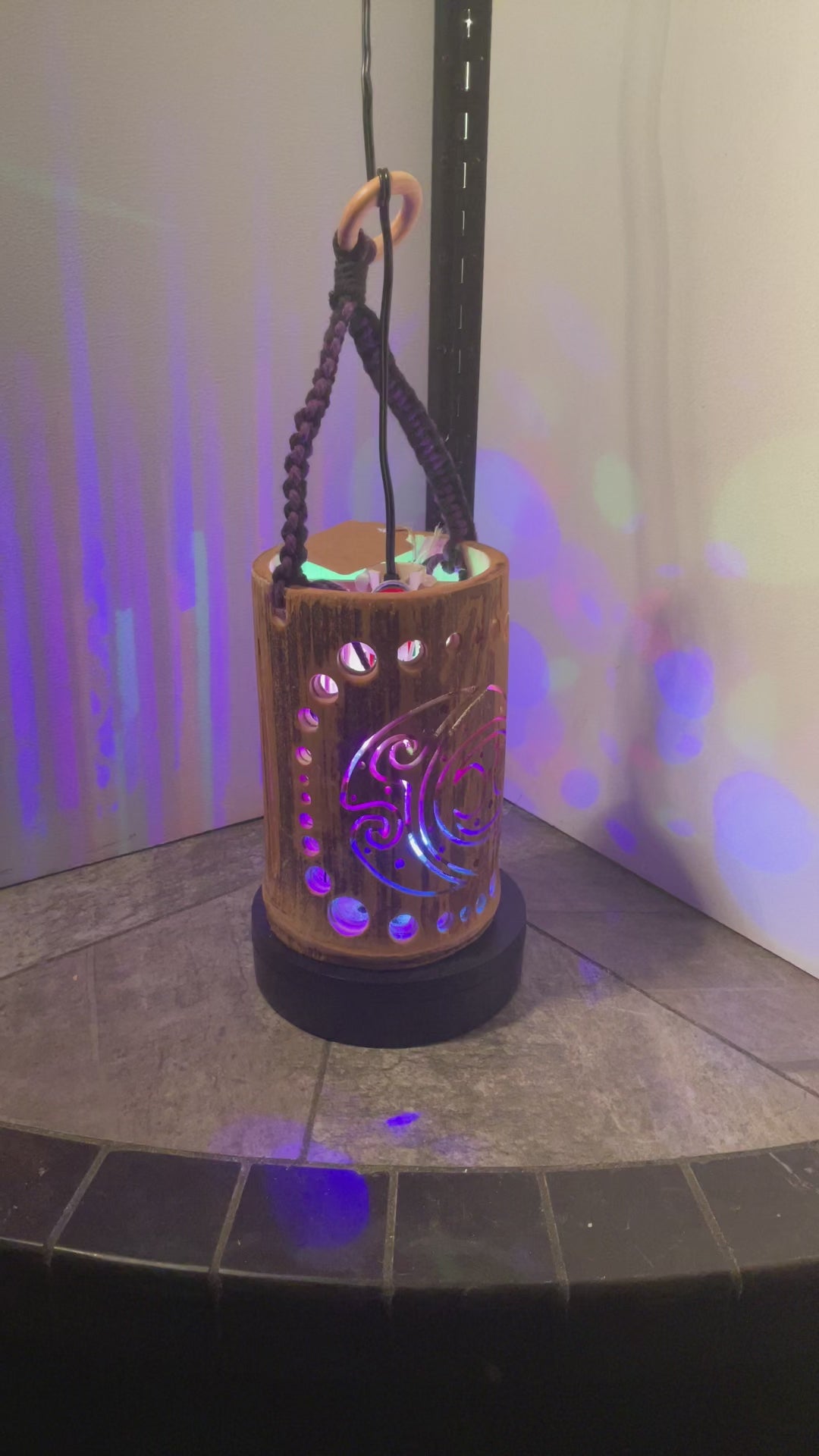 Includes: Signature LED effects with remote control, macrame hanger, AC adapter.
