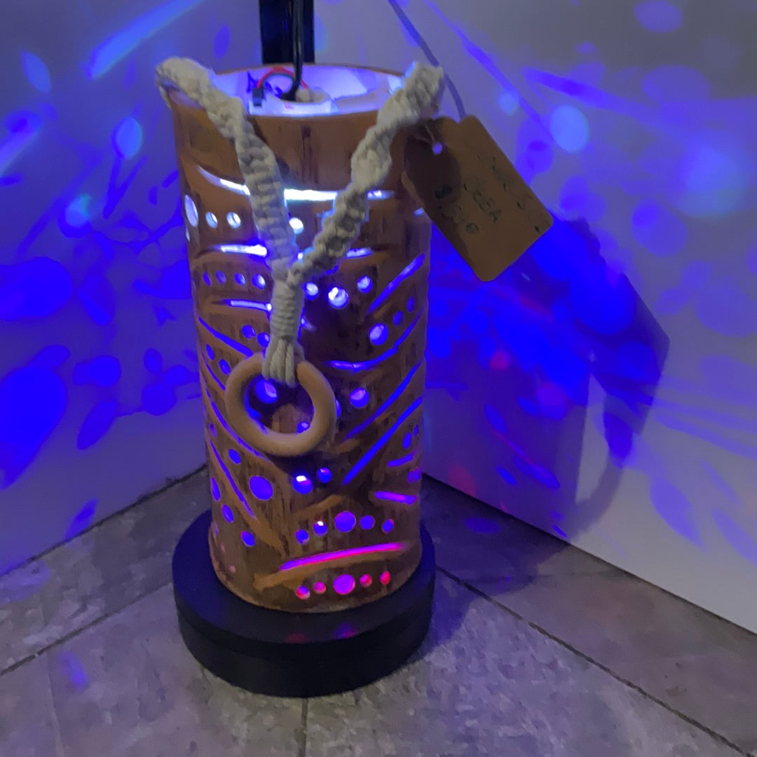 Includes: Signature LED effects with remote control, macrame hanger, AC adapter.